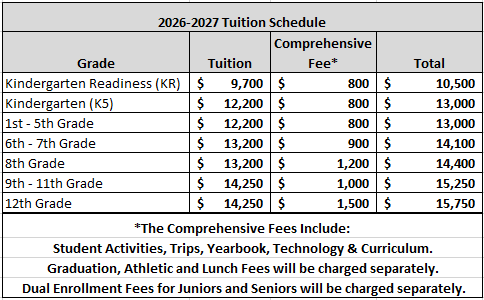 Comprehensive Fee - Fee varies per grade, please see tuition schedule above.